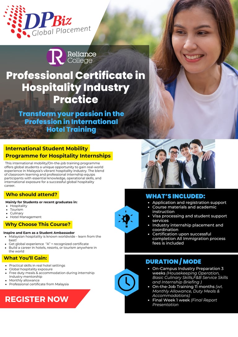 Your global career starts here—with DpBiz Global Placement apply now as there is limited available places.